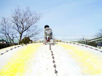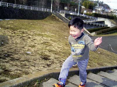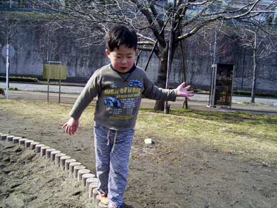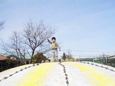 これまた久しぶりの公園。 大喜びではしゃぐS。 |
