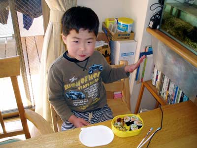これ、おママの身を削ったお弁当メニュー。 弁当箱に食事制限の規定量が入るかどうかも、 事前にチェックする必要がある。 |