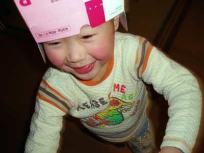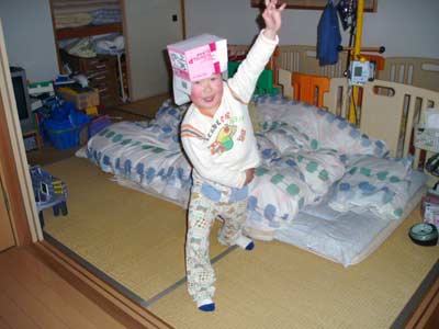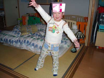 そういえば、昔もオムツ被ったり、大好きだったな被り物。