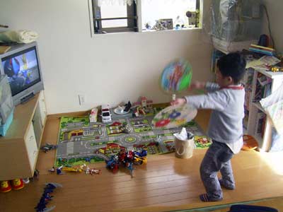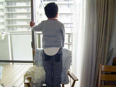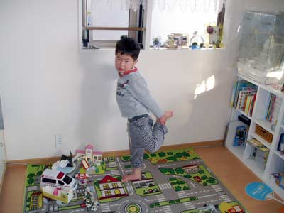 今日逃げ出したのと、 おパパの若かりしビデオを見せ、 「お前も強くなりなさい」 と。 つかまり立ち片足ケンケンの宿題、 1週間でマスターするよう宿題を出した。 もくろみ通り、やる気を出した。 さてどうなるか。 |