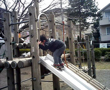異常なほど慎重で、遊具は全くやろうとしない、触ろうとしない。