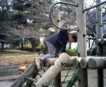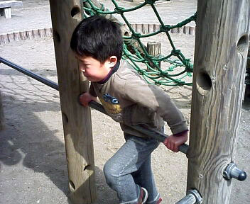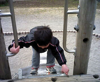 何度やらせてもこれだけは出来なかった。 動きはとても遅く、 「よくこれで登れるな」と思う位なのだそう。 でも自ら挑戦し、できたのだ。 |