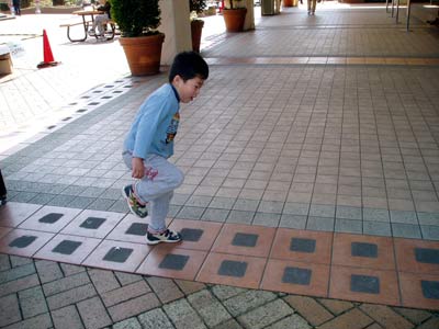 合間を縫って、ケンケンの練習。 地べたに○を書くと、そこそこできる。 タイルだとどれが次の枠かわからず、 上手く跳べない。 動体視力、無いに等しい。 |