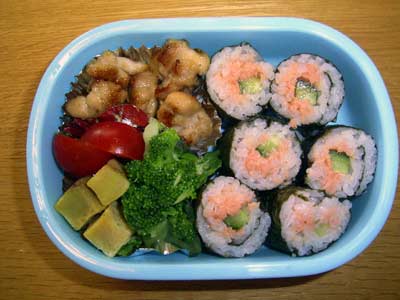 ちなみに今日のお弁当。 300kcal タンパク質13g 脂質8.4g 食物繊維2.5g 外出時に早く食べられるよう、 脂質を多く割り当て、嵩を減らしている。 しかしそれでもマヨネーズは無脂肪だ。 |