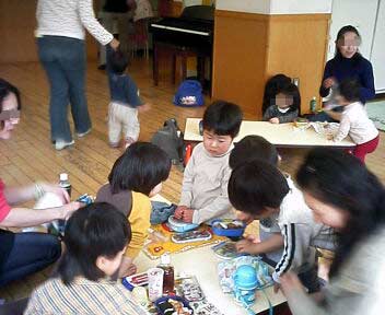 先日の子供サークル同様、幼稚園に入る子を送り出す。
