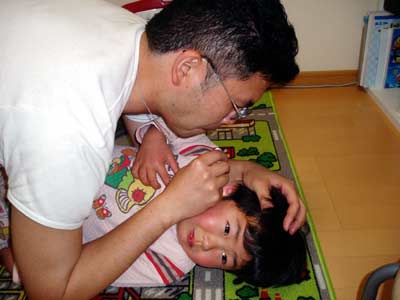 ちなみに耳掃除。 普通の耳掻きって、太くて子供には使いにくい。 あまり耳は気にしないできたけど、 結構詰まってそう。 |