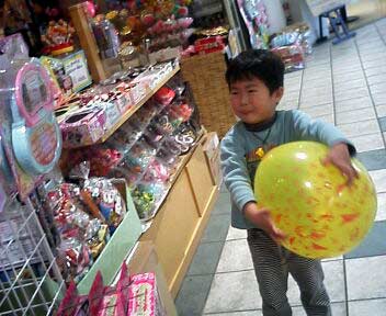 大きな風船を貰って、ご機嫌のS。 |