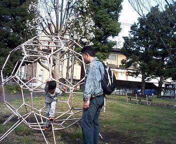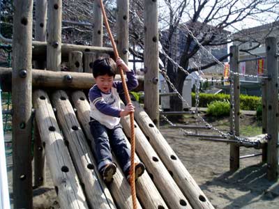 午後の買い物途中の公園。 回転しないジャングルジムがあった。 これは宜しいと特訓開始。 |