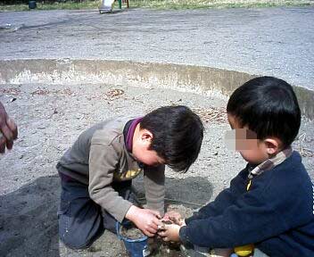 2人で次から次に遊びを見つけて、遊んでいた。 |