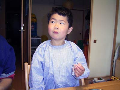 入園式が始まる。 大多数が年少入園生で、 Sのような年中からはSを含め計11名。 その11名が2クラスに割り振られた。 |