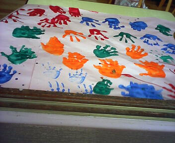 今日はこのような手形をぺたぺた、鯉のぼりを作ったらしい。
