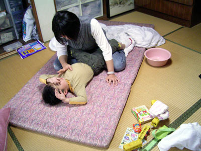 おかしいなと思ったら、 自らゴロンと横になってしまった。 大人しくしてようという約束? 昼寝嫌いなS、普通はあり得ない。 S「遊びたい〜!」 と言って泣くが、起きることができない。 おかしい。 体が熱い。 発熱だ。 |