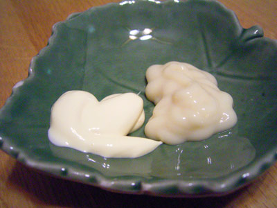 ちなみに左が通常のマヨネーズ、 右が無脂肪のマヨネーズ。 |