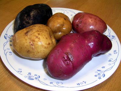 名古屋のババ様からの、ジャガイモセット。 アンデス インカのめざめ キタアカリ シャドークイーン ノーザンルビー。 |