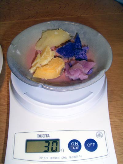 Sには各6gの計30gを取り分ける。 どれもホントに色が違う。 |