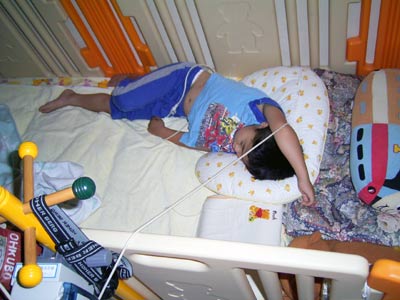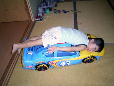 久しぶりに夜出歩いたS、布団に入ると瞬殺であった。 |