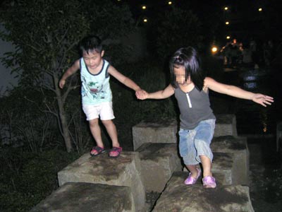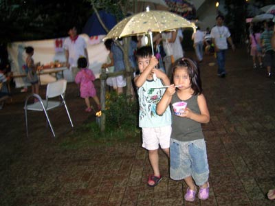 夕方、Sが大好きなORちゃんと合流し、 近くのマンションの夏祭りに。 |