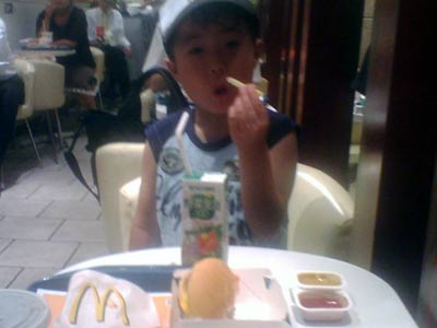 これまではマックでも持ち込みだったS。 何とついに初マック。 |