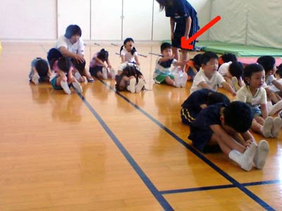 前の子の背に隠れたり、