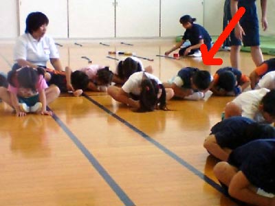 開き室で小学生くらいのお兄ちゃんが転がったりブリッジしたり運動を始めた。
