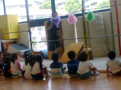 レッスンの始まりはゴーオンジャーの音楽に合わせ、飛んだり跳ねたり。