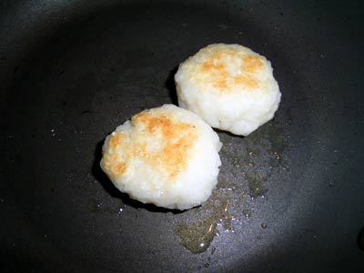 おママ家伝統の?五平餅。 Sには表面をさっと炒める。 味噌をつけて食べるのだ。 何とかお餅を食べられるようにしたいが為の策である。 |
