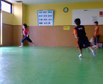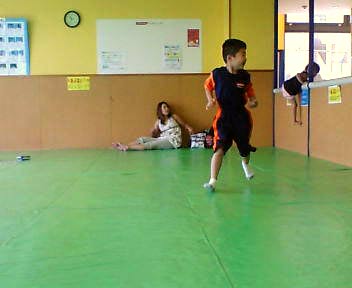 ついにスポーツクラブ、いや運動塾の正会員になり、 ユニフォームを着たS。 鞄から服まで一式、 指定品を揃えなくてはならないが、 Sの場合,、費用対効果は抜群だ。 |