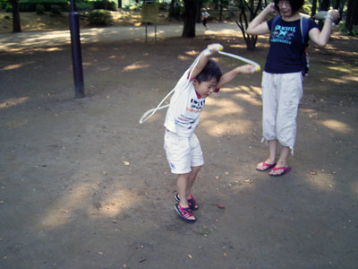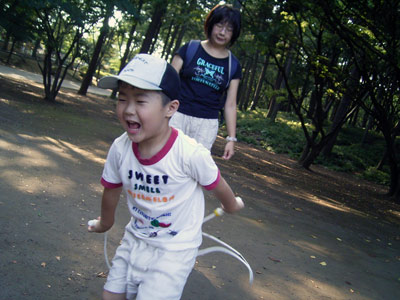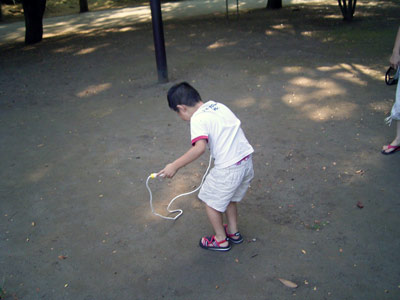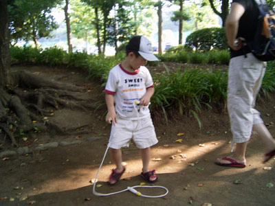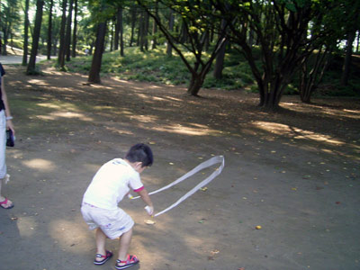 S「セミを見つける!」 とスタコラ走り出すが、 相変わらず視野が狭く、 なかなか見つけられない。 |