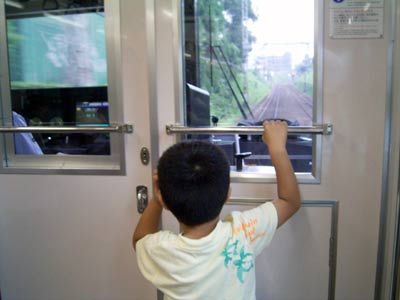 所用でお出かけ。 小田急線だと窓が大きく、Sの背でも前が見通せる。 と思ったら、この後見習い運転士?が入ってきて、 結局抱っこしてやらんと見えなくなってしまった。 暑い日々は水分摂取を制限しているSにとって、とても辛い時期。 水を飲みたいと言っても、私達に却下される事が多いからか、 最近代わりにジュルジュルと啜り飲むマネをして催促するようになってしまった。 それヤメロと言ってるのに・・・。