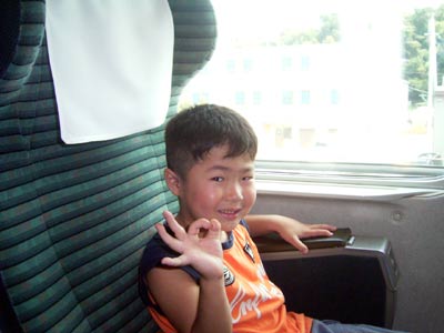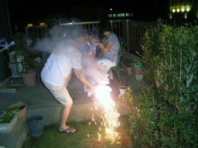 夜は歓迎の花火大会。 煙が半端ないって。 興奮さめやらぬSも旅の疲れか、 布団に入るとすぐ寝てしまった。 |
