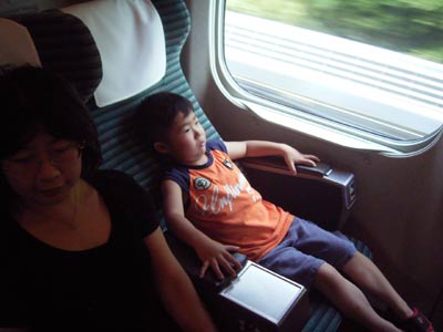何と座席の色からして、いきなりグリーン車。 EXPRESS予約チケットを発券しようとして、 誤ってキャンセルを押してしまい・・・ 何とかグリーン車に空席を確保。 |