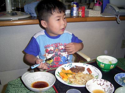 Sの食材をみんなと同じ鉄板で焼く。 S「Sのも焼くの?」 これは前回もそうしたと思うが、 成長と共に気が付くこともあるのだろう。 もちろんSの食材を焼くエリアの油の量には気を遣う。 |
