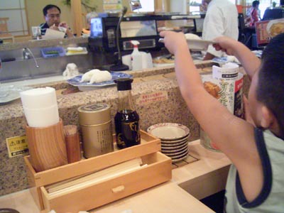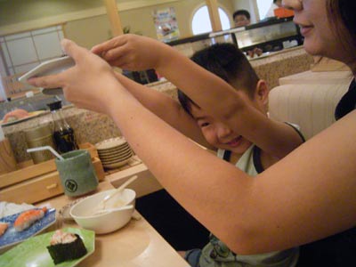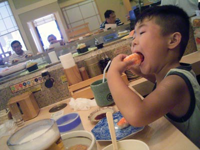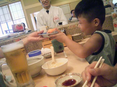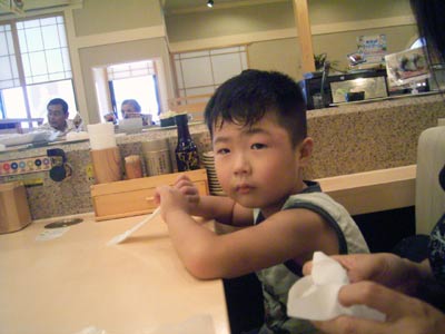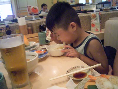回転寿司自体は気に入ったようで、 好んでみんなの寿司を取っていた。 |