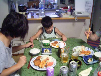 S自体は、こっちに来てから食欲が落ちている。 そりゃ、食べるより遊んで遊んでになってしまい、 仕方ない。 でも、雰囲気を堪能した様子だった。 |