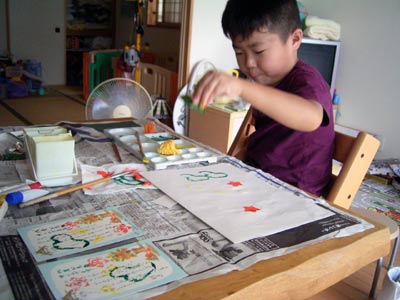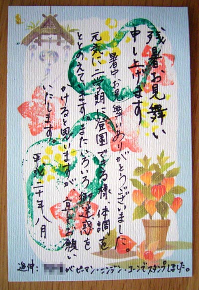 残暑お見舞いのスタンプでした。 最近の幼稚園は・・・。 でも久々のS画廊入りか? |