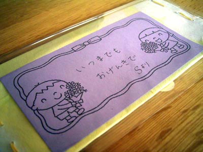 幼稚園で敬老の日にちなんで、 ジジババへのプレゼントを作ったようだ。 財布なんだそうだ。 |