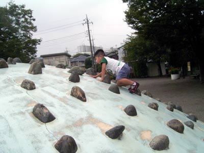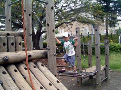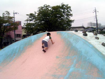 その後もう一つの公園に行くが、 滑り台は精彩を欠き、全く登れなかった。 ガス欠だろう。 |