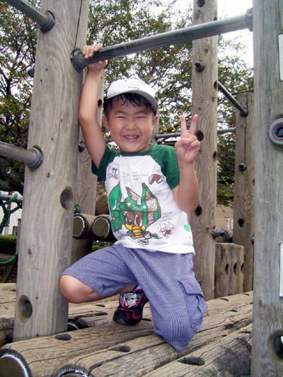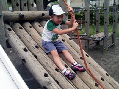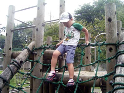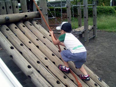 まさかこれは1人でできないだろうと思った、 滑り台の逆送も上がりきってしまった。 |