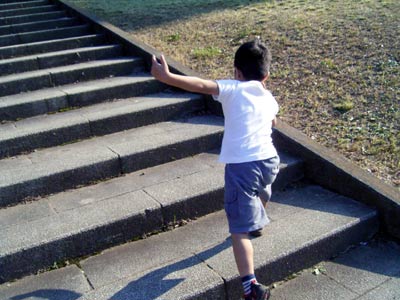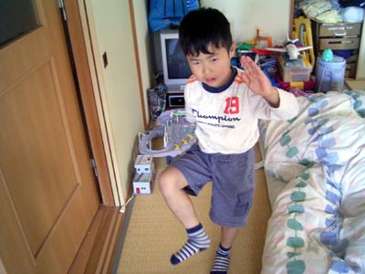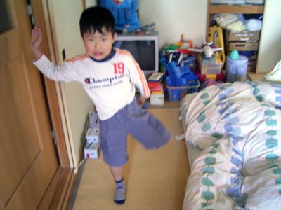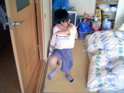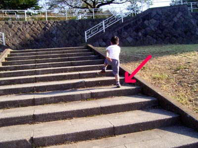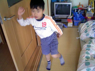 ほっ!ほっ!・・・ありゃ? う、ウソだろ〜・・・ 手と足が一緒じゃん・・・。 |
