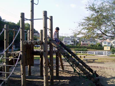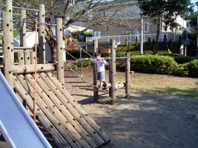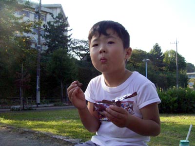 Sは砂遊びに転じてしまった。 行進の練習がちょっと疲れたかな。 |