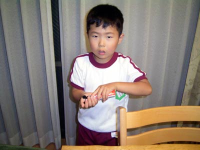 帰宅するやいなや、 お腹空いたとラムネをパク付くS。 |