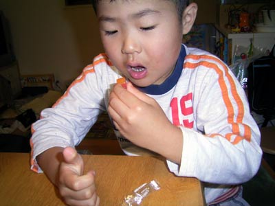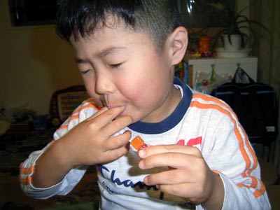 食後は必ず「甘いもの」を欲しがるS。 完食のご褒美で少々与える。 |