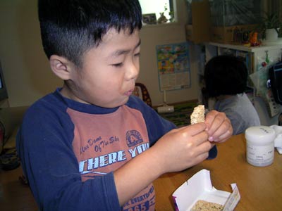 なんじゃこりゃ?! 固くて一口で放ってしまった。 千歳飴は囓れるのに、これでは知恵はつかんな。 |