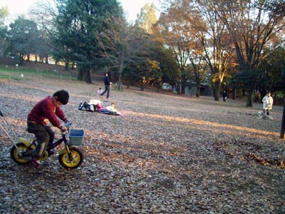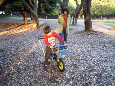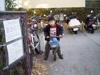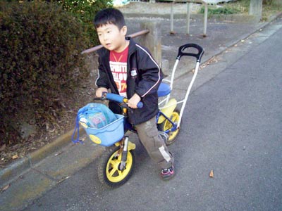お友達が自転車に乗っているのを見て、自分も乗りたいと強く思っているようだ。