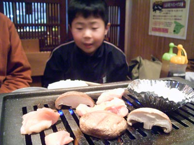 しかしイキナリ焼き肉とは確かにヘビー過ぎるか・・・。 Sの焼き物は鳥と野菜にした。 |