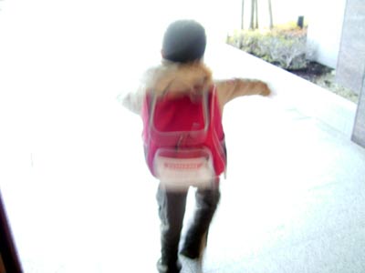 行ってきま〜す! 何度もおママに手を振るS。 |