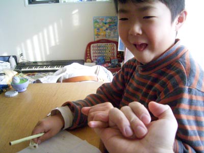 目が近くなったら、でこピンの約束。 笑っていられるかな? |