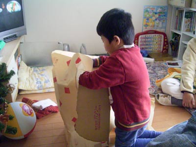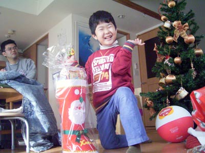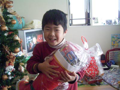 中には巨大長靴が。 お菓子が入っていて、大喜び。 |