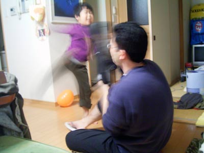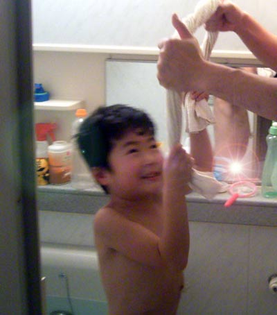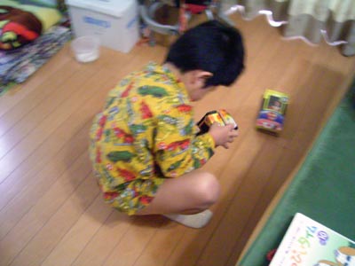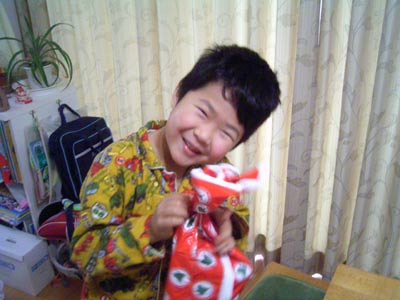 起きて早々長靴を確認、喜び勇んで見せびらかしに来た。