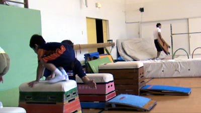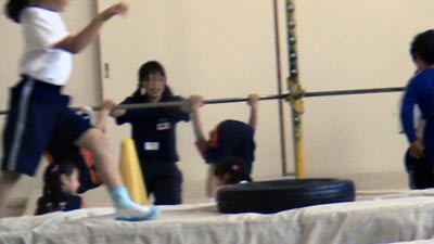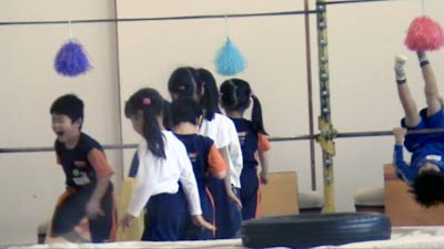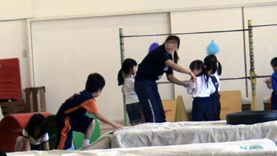 前回までできなかった跳び箱乗りも、 できるようになっている。 |